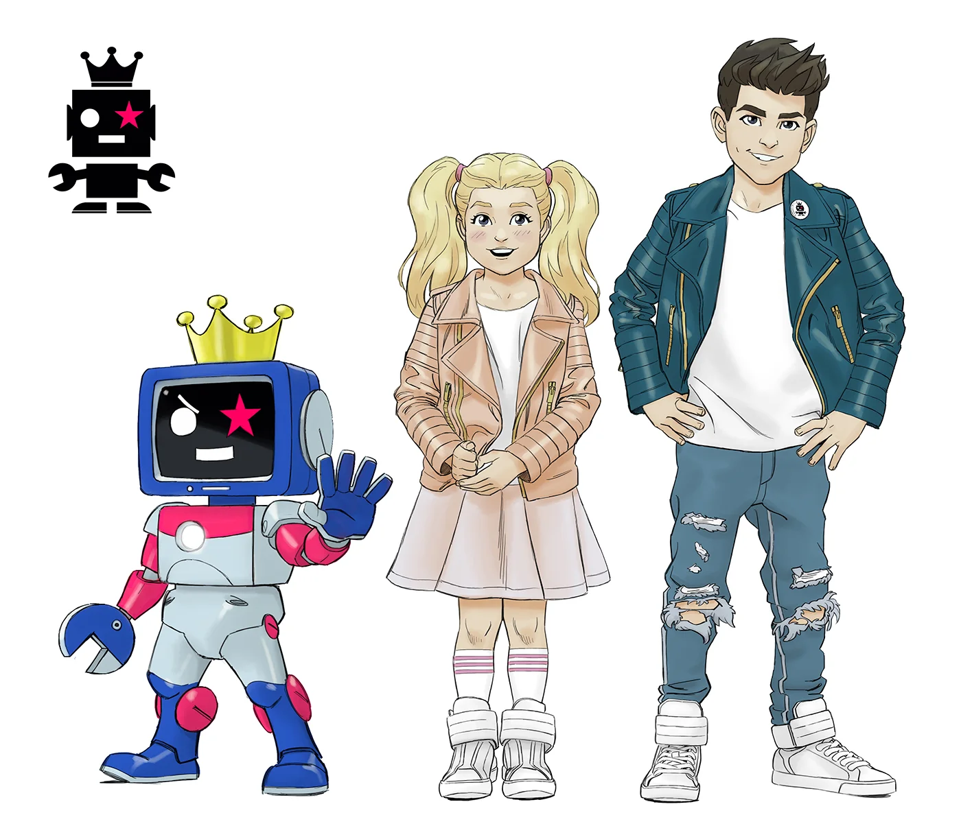 Boy, girl and robot character designs for the new children's fashion line Roy Earl.